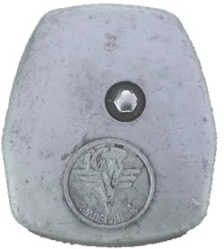 The general look of the engine is squarer than the Ural. The timing cover (shown on the right) at the front of the engine is also angular, this one has the most common Dnepr logo as part of the casting. The other logo looks like a pile of triangles making one larger triangle. |